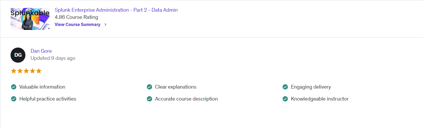 Splunk® Data Administrator Training Course for Splunk – Admin Certification Track